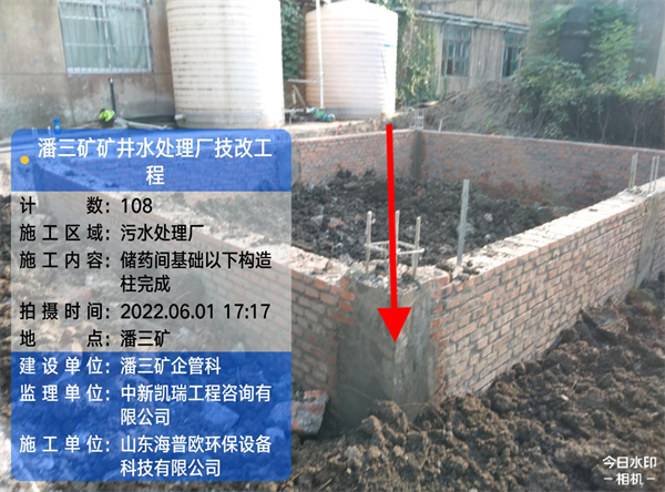 工程名稱:潘三礦礦井水處理技改工程 氣溫:34-22° 天氣:晴