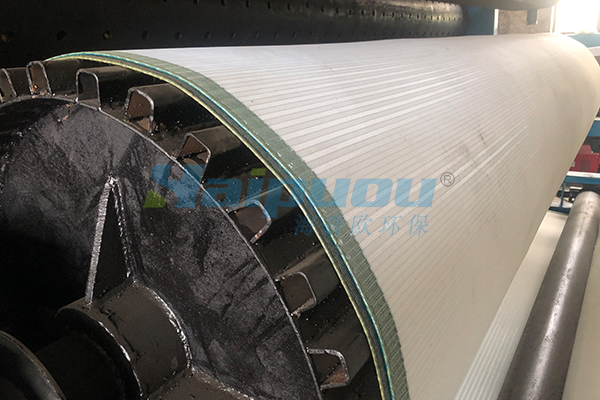 5 濾帶: 是帶式壓榨過濾機(jī)的主要組成部分,污泥的固相與液相的分離過程均以上、下濾帶為過濾介質(zhì),在上、下濾帶張緊力作用下繞過壓榨輥而獲得去除物料水分所需壓榨力。