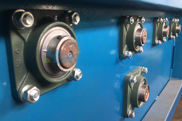 9 卸料裝置:由刮刀板、刀架、卸料輥等組成,其作用是將脫水后的濾餅與濾帶剝離,達(dá)到卸料的目的。
