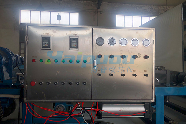 4 楔形區(qū)脫水裝置:由上下濾帶所形成的楔形區(qū)對所夾持物料施加擠壓力,進(jìn)行預(yù)壓脫水,以滿足壓榨脫水段對物料含液量及流動性的要求。