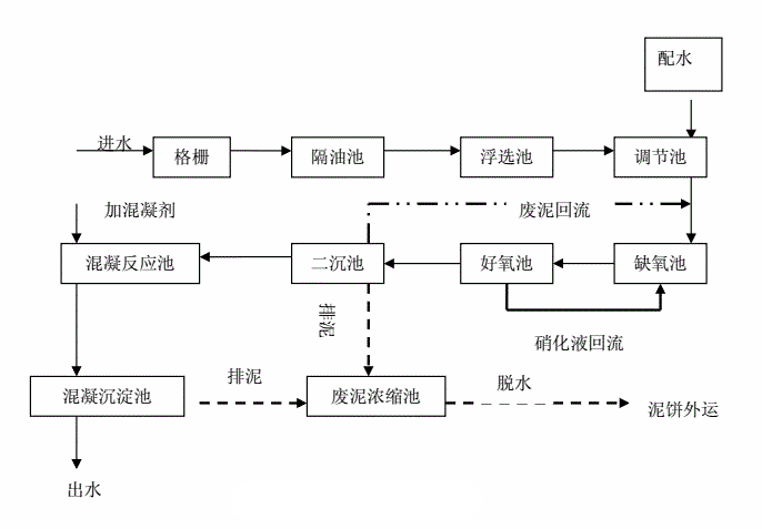 生物處理前的預(yù)處理方法通常是物理和化學(xué)方法,如氣浮法、吹脫法、混凝沉淀法、折點(diǎn)氯化法等,主要目的是使二級生化處理工藝的進(jìn)水達(dá)到可生化處理的范圍。